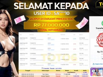 Selamat Kepada Member Setia TOTO6 dengan USER ID : SA****10 Jackpot Di Permainan Slot STARLIGHT PRINCESS 1000…